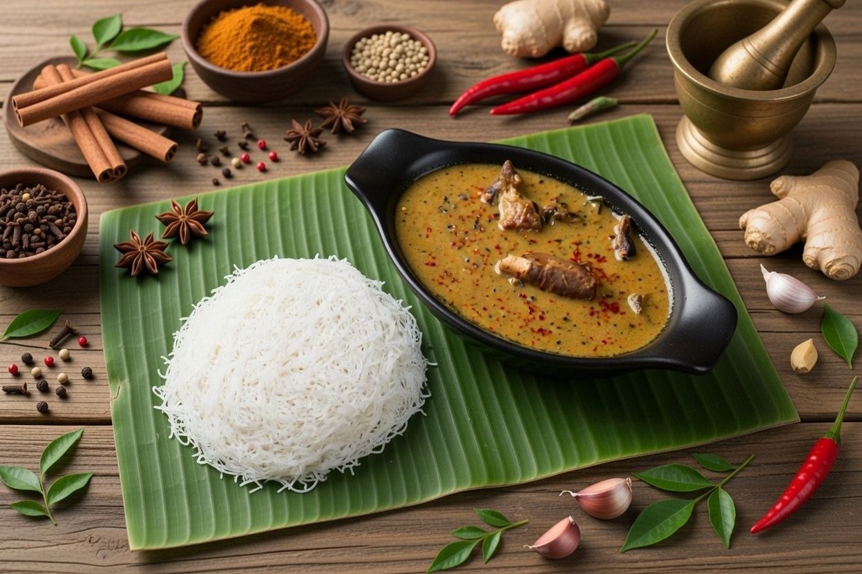 Idiyappam served with rich and hearty paya